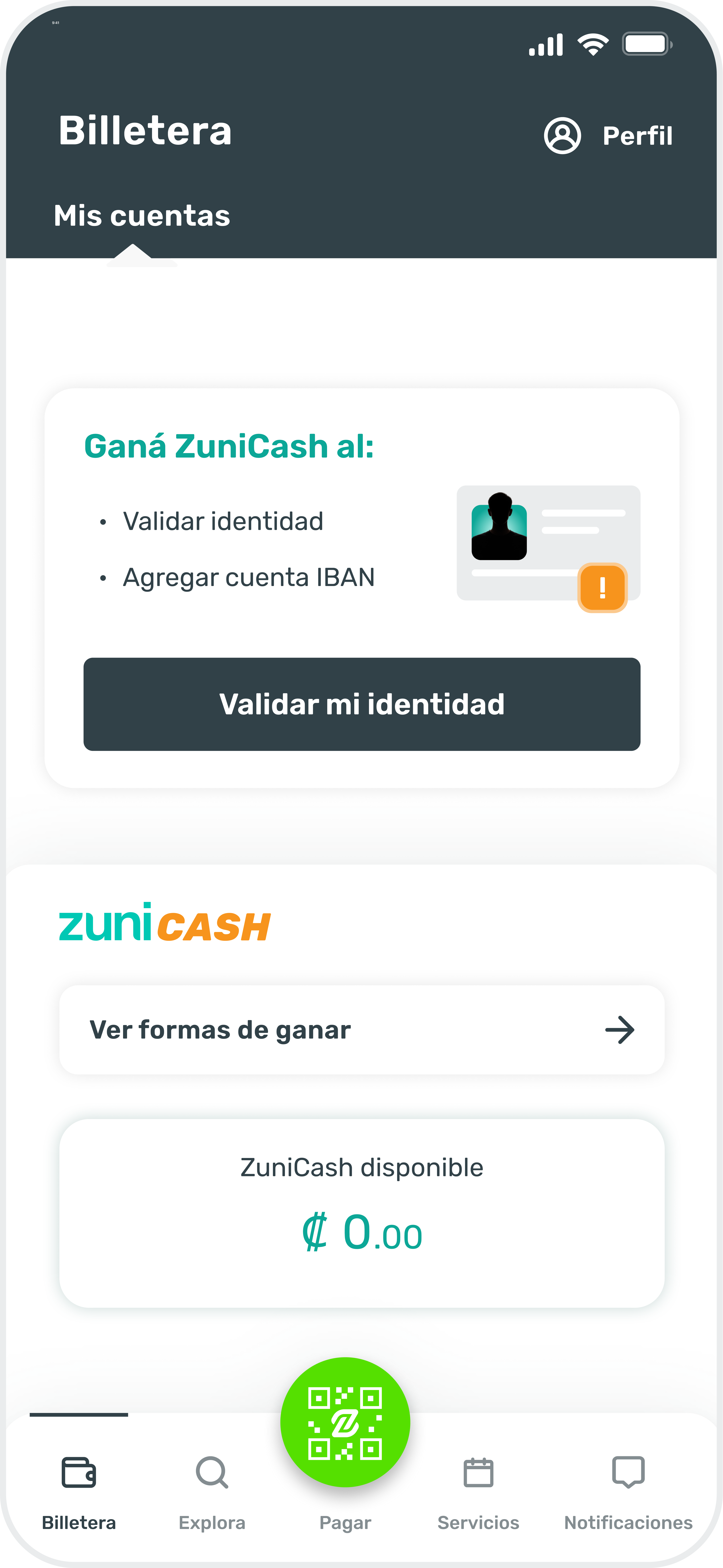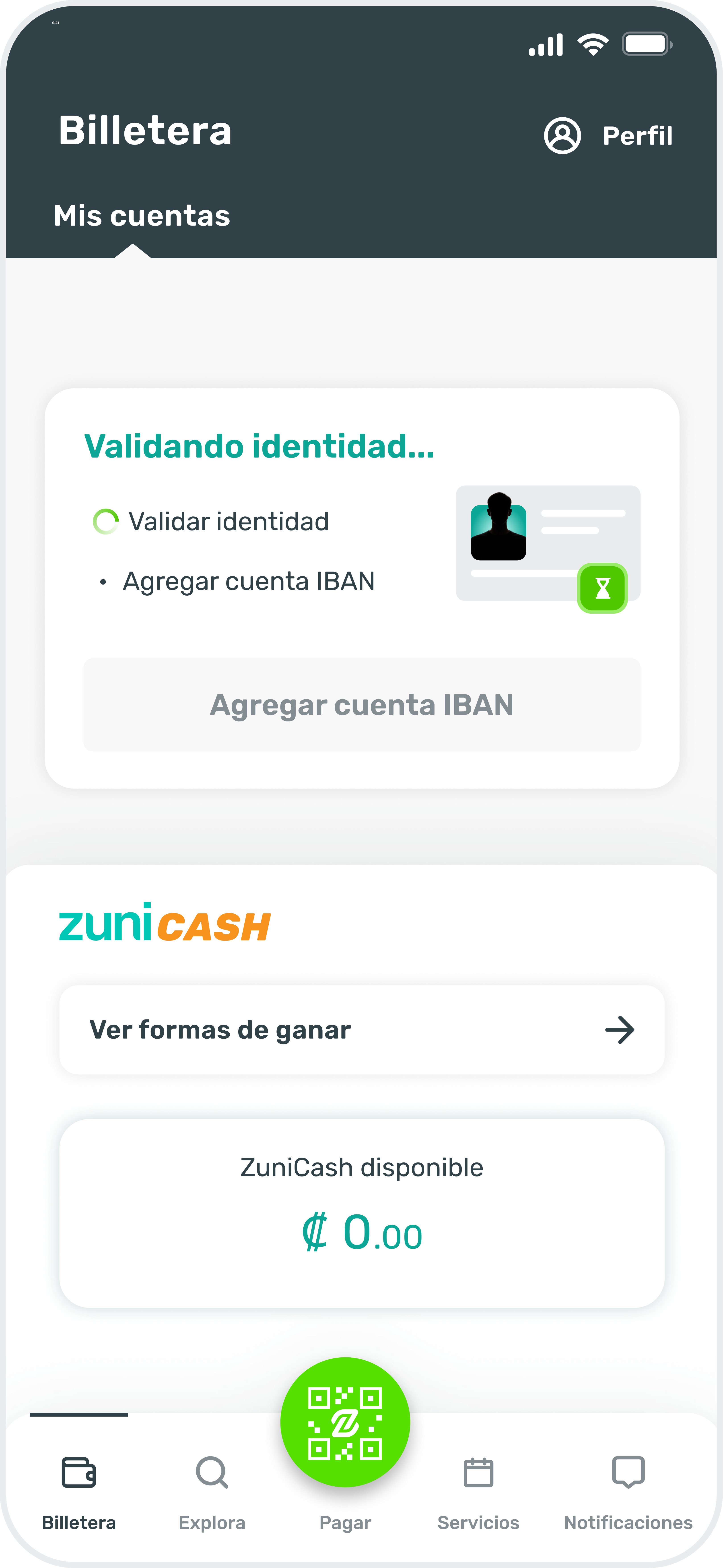 • El flujo y requisitos son los mismos, el cambio es más visual, donde la persona va a ver que para ganar ZuniCash debe validar la identidad y agregar una cuenta IBAN