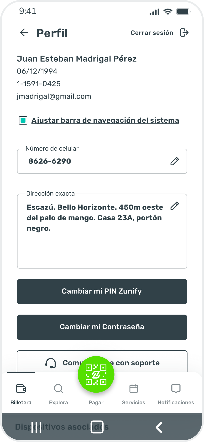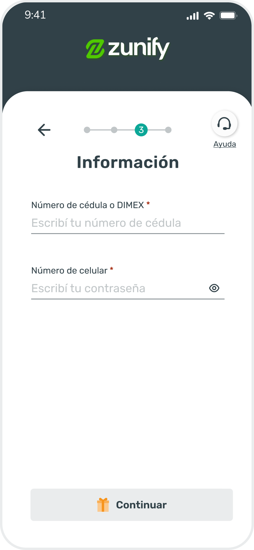 • Solo puede haber 1 cuenta de Zunify por cédula o DIMEX