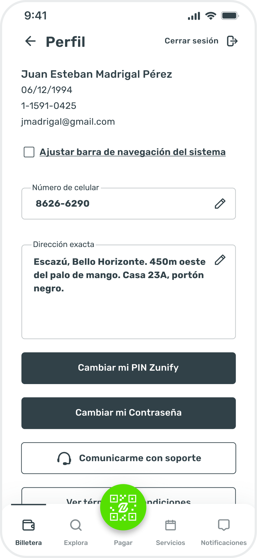 • EL PIN se puede cambiar desde la sección de Perfil en Zunify App.