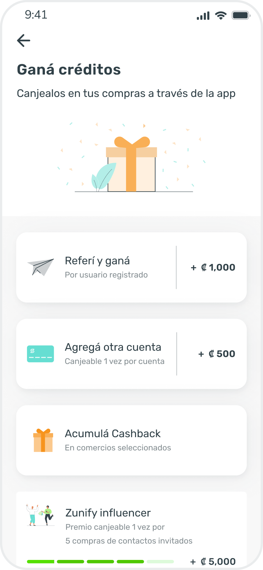 -Es exclusiva de una financiera, la persona deberá agregar a Zunify App una cuenta de esa financiera para activar este beneficio.