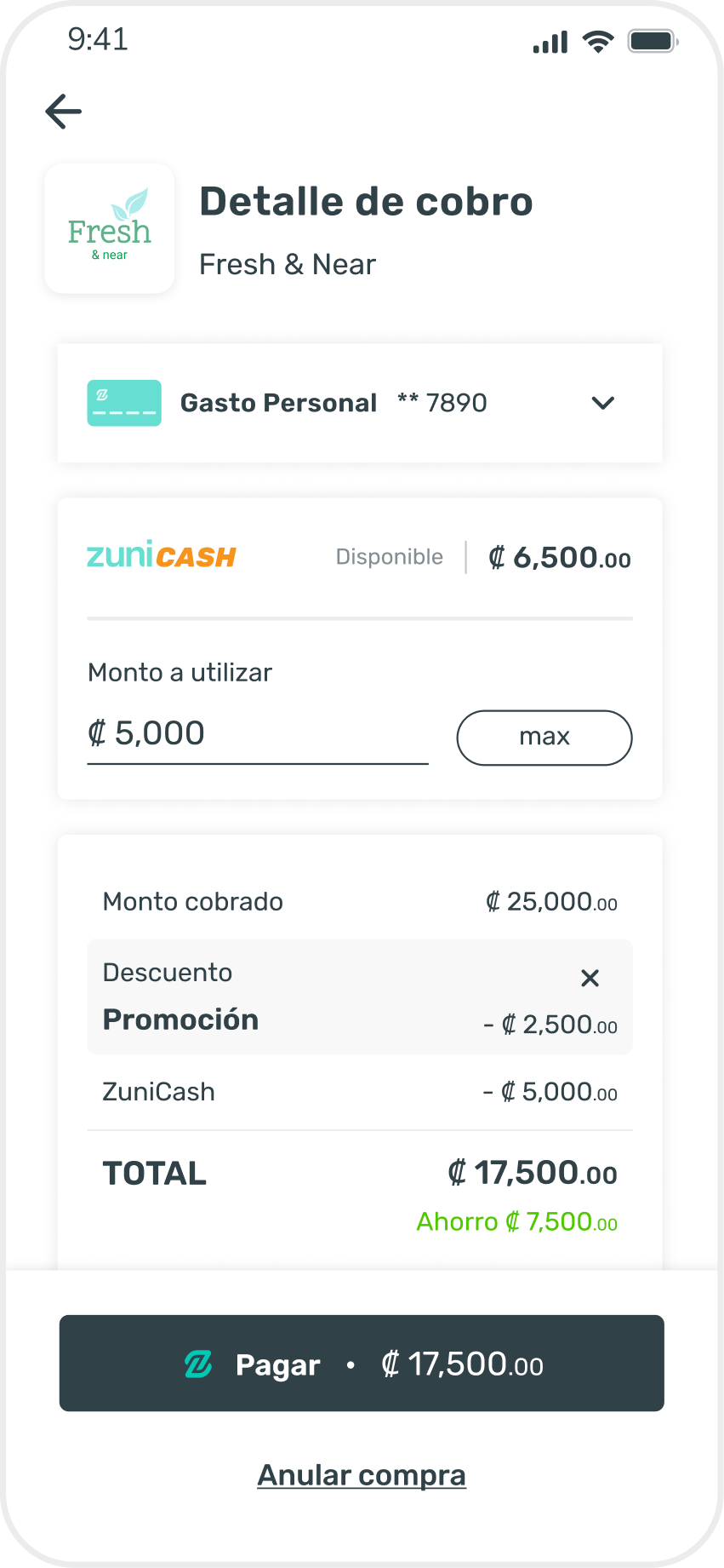 En caso de tener ZuniCash se puede utilizar para pagar y completar la compra