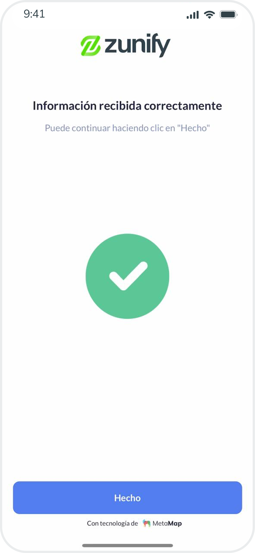 La validación dura unos pocos minutos, en caso de durar más tiempo se pude contactar con el soporte de Zunify.